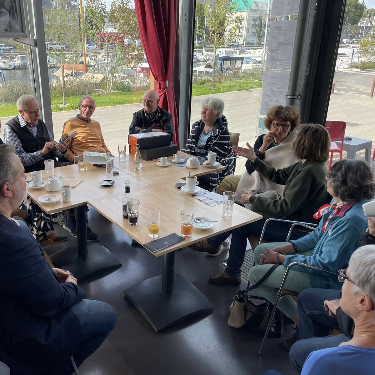 Après la conférence du 25 septembre , certains adhérents se sont réunis autour de Pierre le Goff, ancien président et Jean Paillard, ancien secrétaire pour les remercier de leur investissement auprès de l'UTL pendant de nombreuses années